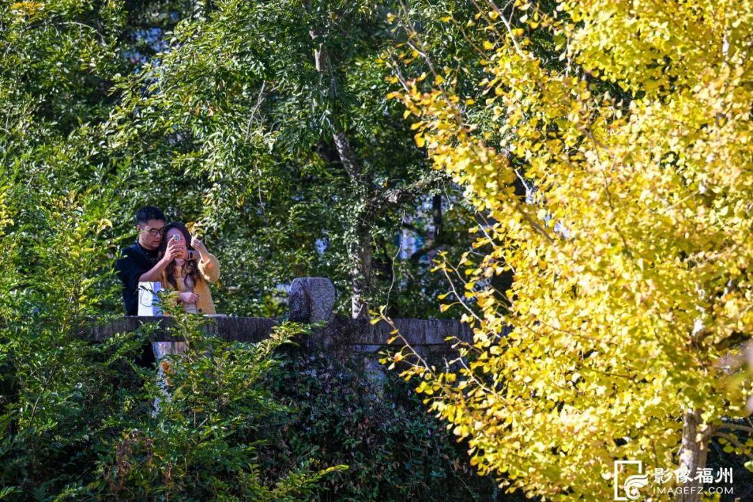 在双溪汇流的古桥边,岸边的枫叶红得愈发纯粹而热烈,高大的银杏则撑开了金黄色的巨伞,在冬日的点染下,共同谱写了一曲恢宏的森林交响诗。(朱榕/文)