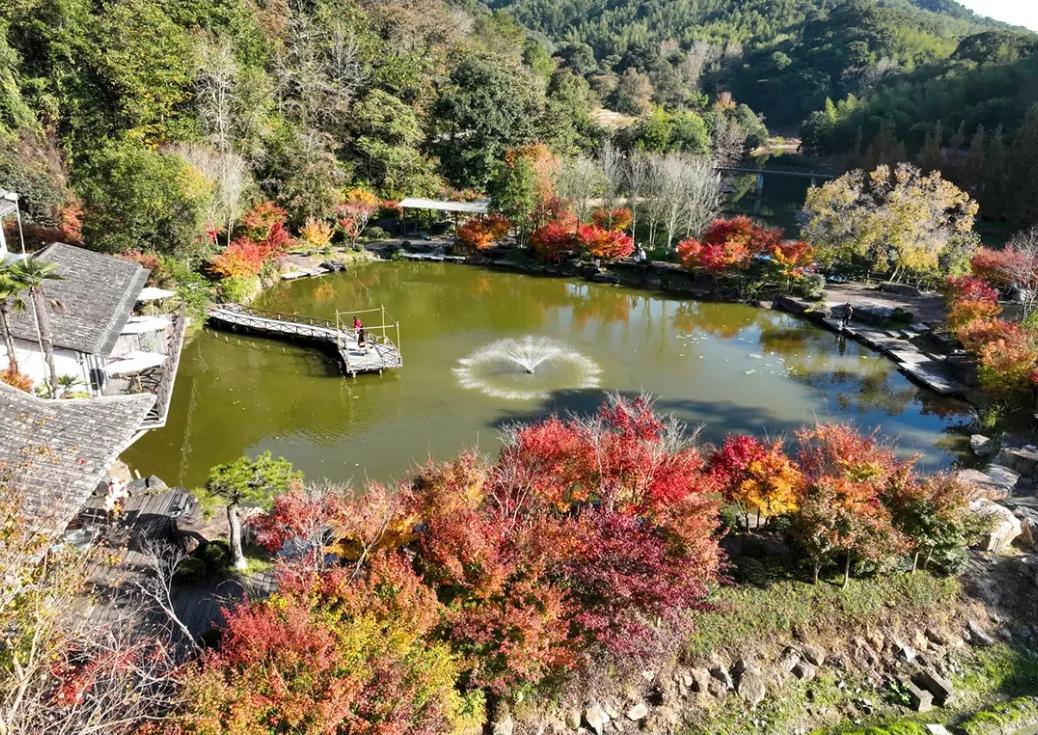 当时序走入初冬,晋安区寿山乡九峰村正迎来一年中最色彩斑斓、如诗如画的红叶季。若要问今时力峰最美的景致在何处,南阳溪下游的枫林水岸必定榜上有名。夹岸而生的枫树,层层叠叠,如烟霞般炽烈燃烧,与岸边亭亭玉立、依旧翠绿的水杉形成了鲜明的撞色。