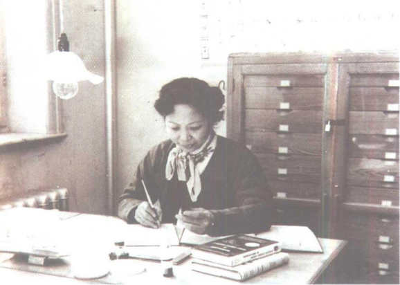 1957年,林兰英在办公室留影。图源:《林兰英院士科研活动论著选集》