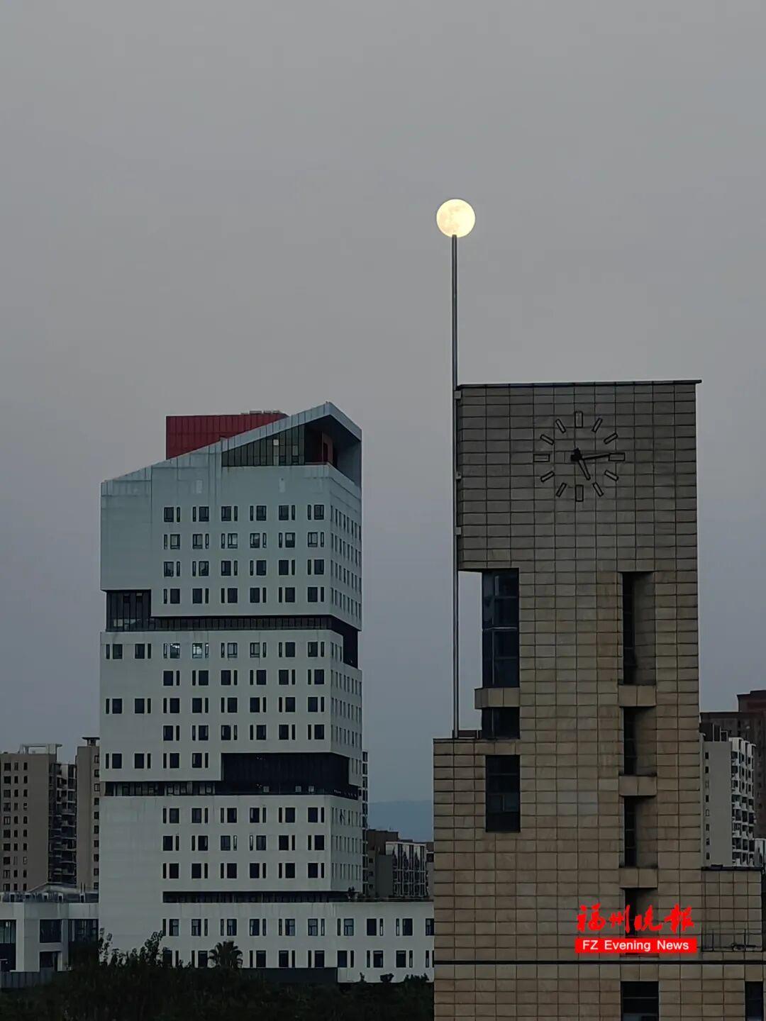 在福州日报社楼顶追月。陈捷阳 摄