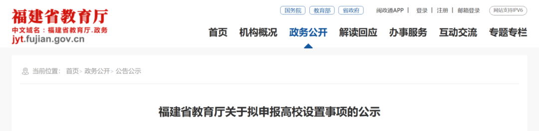 公示中!福建将新增一医学院! 最新! 福建省教育厅发布 关于拟申报高校设置事项的公示 一起来看—— 根据《中华人民共和...