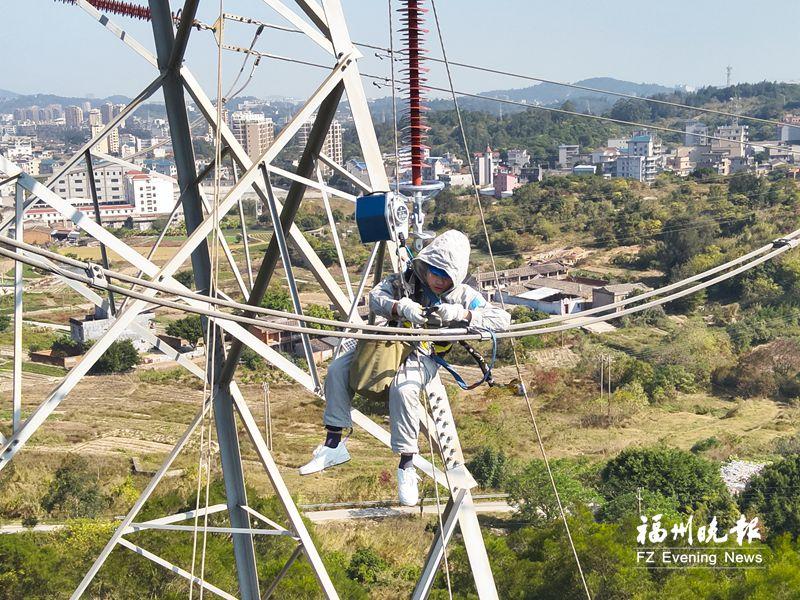 据介绍,该铁塔地处风口区域。每到冬季风力强劲,给线路供电可靠性带来隐患。国网福州供电公司决定采用带电作业方式开展改造,在保障供电连续性的同时,精准提升线路抗风性能。