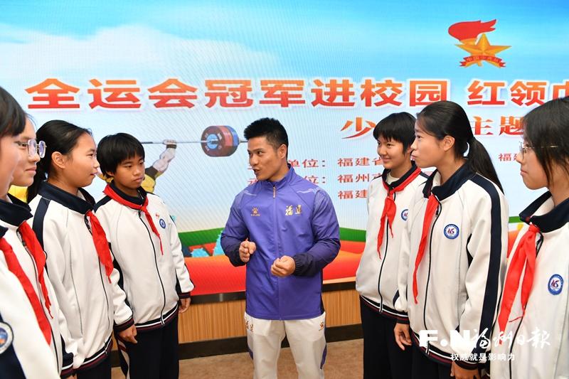 9日,首场“全运会冠军进校园 红领巾致敬榜样力量”少先队主题活动在福州第十六中学举行。奥运冠军、全运会冠军李发彬走进校园,与师生面对面交流,分享成长故事,传递拼搏精神。活动由省少工委办公室、省青少年事业发展中心主办。