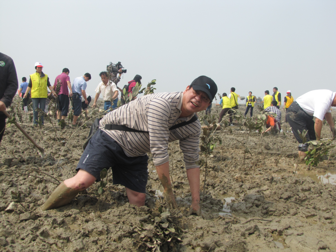此时的卢昌义灵感一闪,与同事们一道,决定利用不同种类红树植物生长速度及群落外貌颜色的差异,在滩涂上勾勒一幅“我爱祖国”的地标景观。