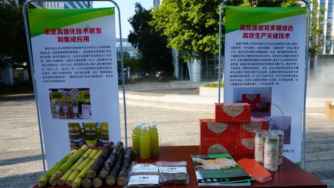 在科特派成果展区,健康灵芝饮、葛根食品、优质绣球菌、深海螺片、多糖银耳、草莓酒等特色农特产品琳琅满目,集中展示了近年来福州市特色农业、海洋渔业、生物医药等领域发展取得的丰硕成果,体现了科技特派员在品种培育、品质提升和产业链延伸中的关键作用。科技特派员代表韩金志博士现场介绍了相关农产品的技术研发与产业化路径。
