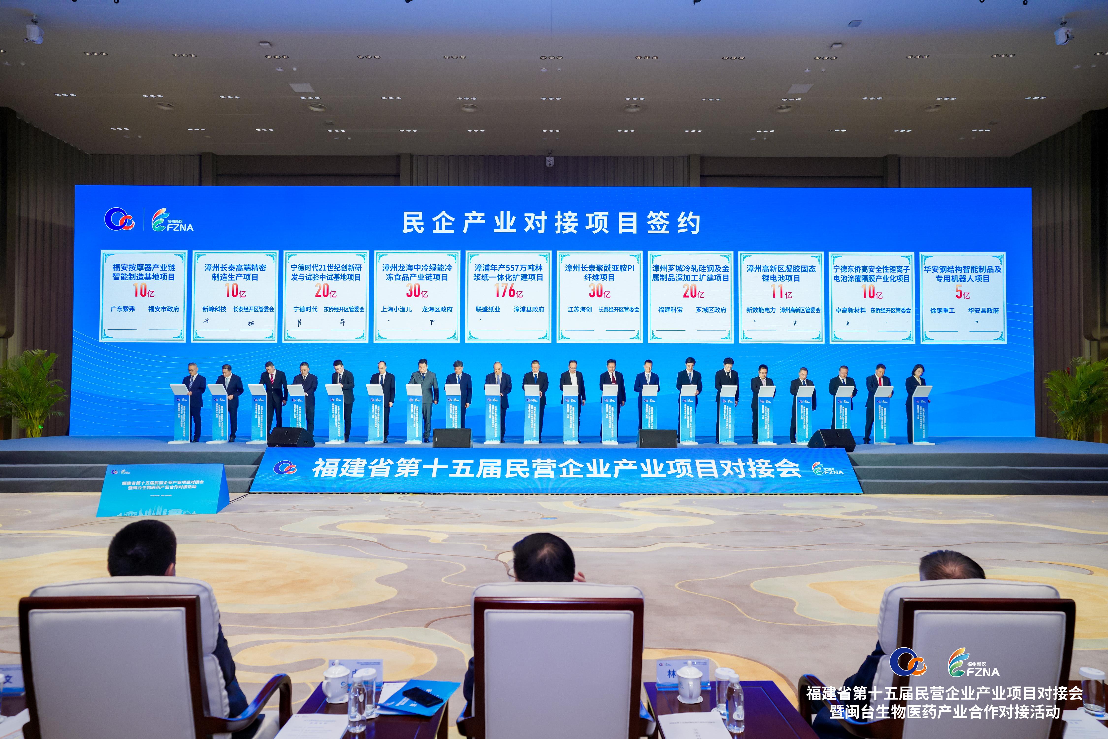 12日,福建省第十五届民营企业产业项目对接会暨闽台生物医药产业合作对接活动在福州举行。现场集中签约重大产业项目70个,总投资额达1123.9亿元。
