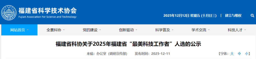 12月11日,福建省科协公示2025年福建省“最美科技工作者”人选,一起来看——