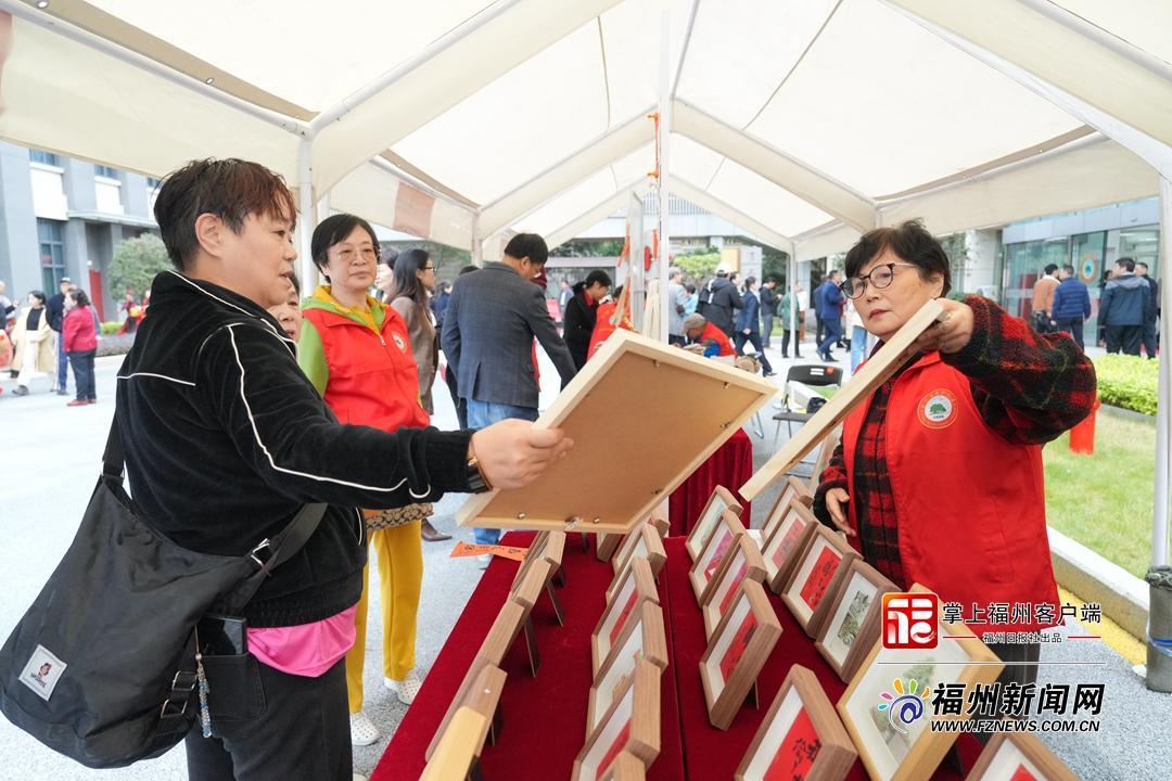 当天的爱心义卖摊位前摆放着老年学员亲手制作的大漆茶台、藤编筐、手工香囊、定制挂饰等手工作品,书画摄影展上一幅幅书法作品、摄影作品吸引不少观众驻足欣赏、拍照留念。书画笔会现场,老年“书画家”们挥毫泼墨、即兴创作,行书、楷书、隶书、草书轮番上阵,花鸟、山水、人物跃然纸上。