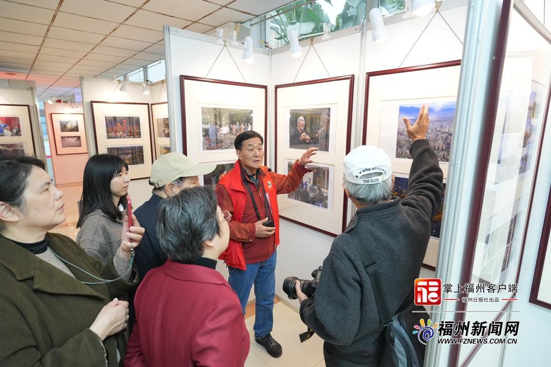 老年摄影爱好者现场介绍自己的作品。记者 包华 摄