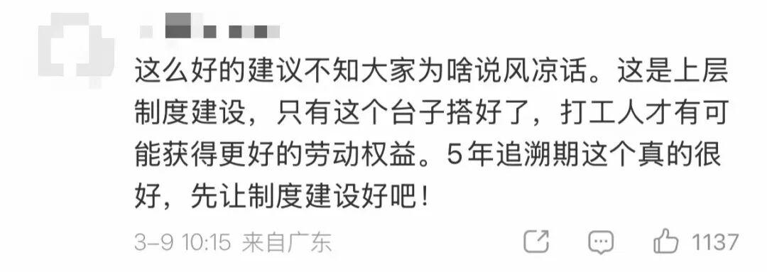 他建议将每日8小时标准工时缩短至7小时,大幅提高加班工资标准并强化支付硬约束,同时建立加班报酬5年追溯机制,以制度刚性规范企业加班行为,切实保障劳动者休息权与劳动报酬权。